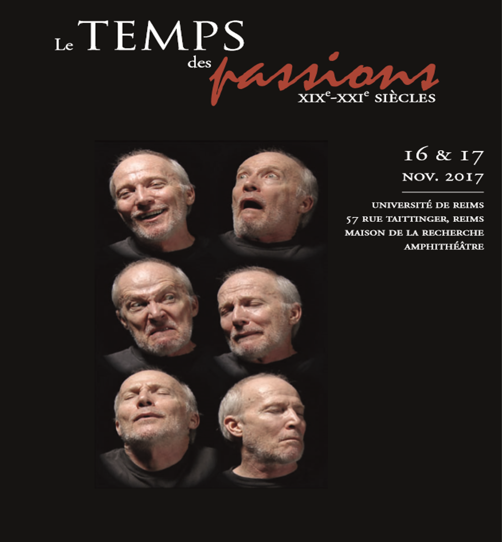 Un colloque sur « le temps des passions » se tiendra à Reims le jeudi 16 et le vendredi 17 novembre 2017. Le titre met en jeu un terme, « passion », encore d’actualité au XIXe siècle dans un sens large (le mot recouvre ce que nous entendons actuellement par « passion », amoureuse notamment, mais aussi par « sentiment » ou « émotion ») : il peut s’agir d’amour, de colère, d’espoir, de regrets, etc. La réflexion aura pour objet la fiction narrative ou théâtrale et la poésie française ou étrangère des XIXe et XXe– XXIesiècles.